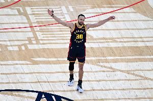 库里此役25中14、其中三分12中6,轰下42分6板7助1帽!