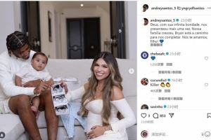 安德烈-桑托斯社媒晒出一家合照,宣布妻子怀上二胎,配文:“上帝以其无尽的仁慈,再次赐予我们恩典。我们的家庭将迎来新成员,布莱恩即将到来,使我们更加完整。我们爱你,孩子!”