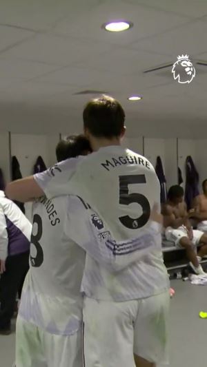 赛后马奎尔接受完采访回到更衣室,曼联全队热烈欢迎了这位进球功臣,为他送上鼓掌和拍头祝贺,队长B费更是搞怪庆祝。
