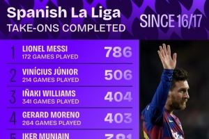 体育资讯10月10日讯 Squawka统计了2016-2017赛季以来球员在西甲的成功过人次数,并列出榜单,梅西786次居首,维尼修斯506次第二。